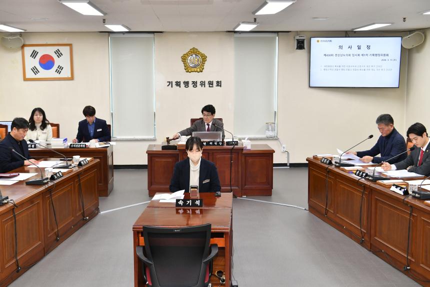 경상남도의회 기획행정위원회는 지난 11일 제430회 임시회 기간 중 제1차 기획행정위원회를 개최하였다.