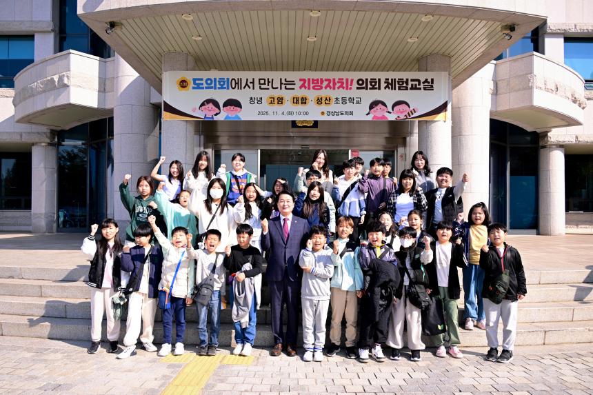 경상남도의회(의장 최학범)는 4일 창녕 소규모 공동학교(대합초, 성산초, 고암초) 학생 33명을 대상으로 도의회에서 만나는 지방자치! 의회체험교실을 개최했다.