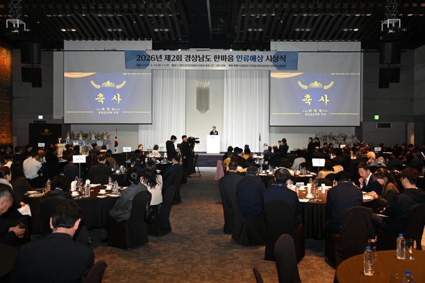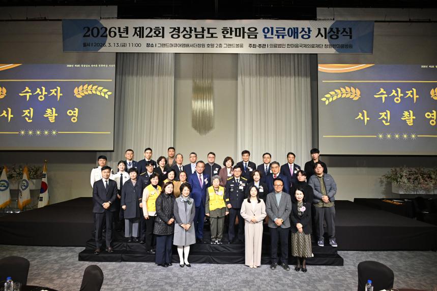 경상남도의회(의장 최학범)는 3월 13일 제2회 경상남도 한마음 인류애상 시상식에 참석했다.